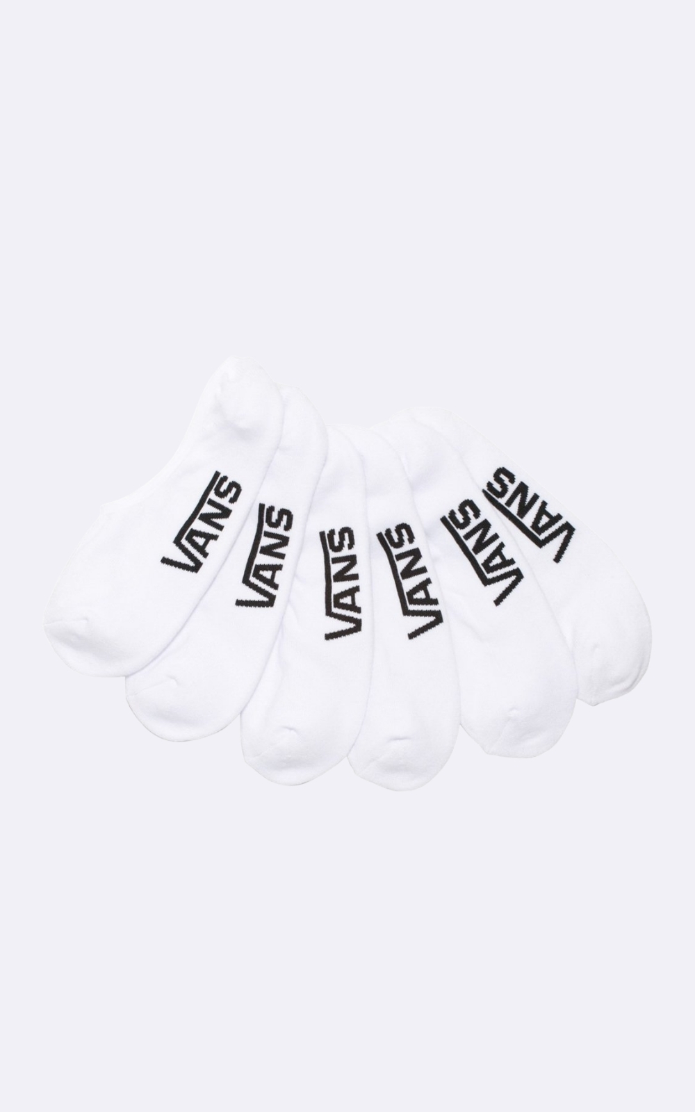 O pack possui três pares de meias soquetes em tecido estilo sapatilhas clássicas, um branco, um preto e outro par em cinza. Traz assinatura Vans em “Drop V” estampada na sola. O